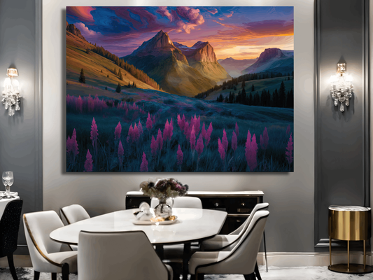 Blossoms Beneath Sunset Peaks Painting Wall Art