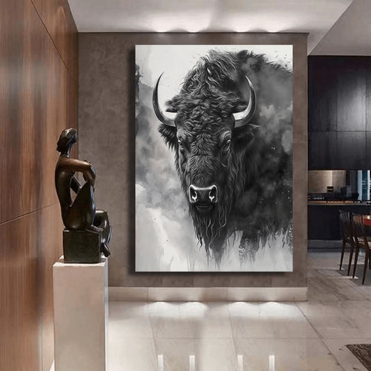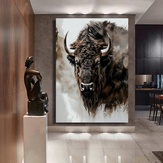 Buffalo’s Majestic Strength in Shadows Wall Art